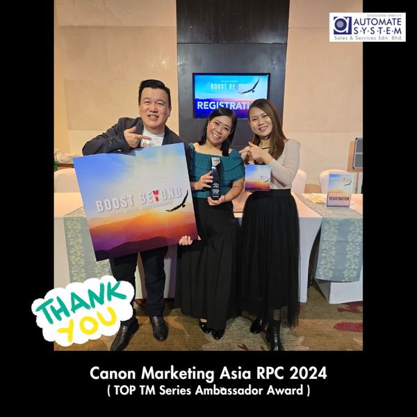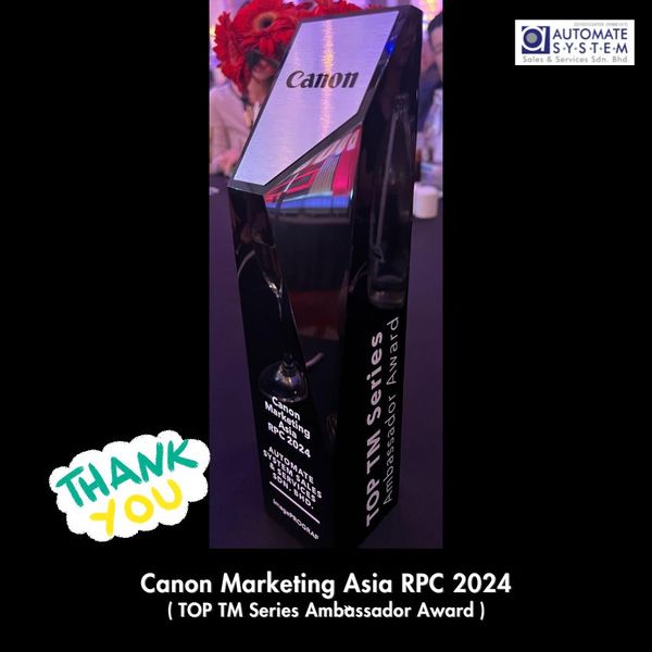 Automate System is #thankful to have received the 𝗧𝗼𝗽 𝗧𝗠 𝗦𝗲𝗿𝗶𝗲𝘀 𝗔𝗺𝗯𝗮𝘀𝘀𝗮𝗱𝗼𝗿 𝗔𝘄𝗮𝗿𝗱 again at the 𝗖𝗮𝗻𝗼𝗻 𝗥𝗲𝗴𝗶𝗼𝗻𝗮𝗹 𝗣𝗮𝗿𝘁𝗻𝗲𝗿 𝗖𝗼𝗻𝗳𝗲𝗿𝗲𝗻𝗰𝗲 𝟮𝟬𝟮𝟰! This marks our 2nd consecutive year being honored with this prestigious recognition